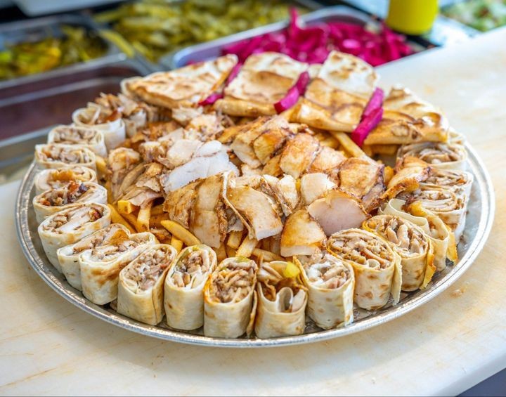 Feeds 5. Beef shawarma, Fries, Pickles, Sauces, 2L Soda